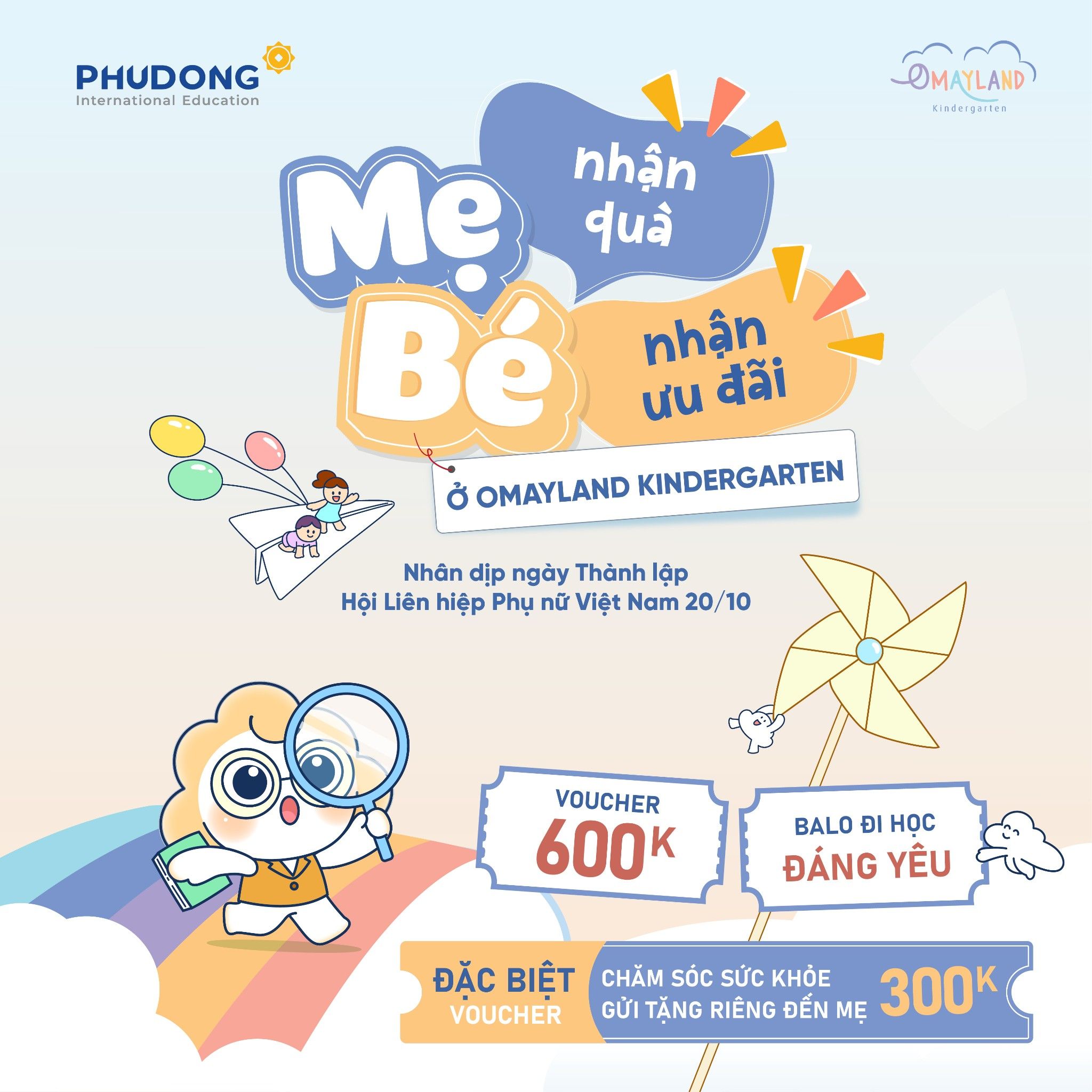 - Các bạn nhỏ nhận ngay: voucher 600K và balo đi học đáng yêu của OmayLand.