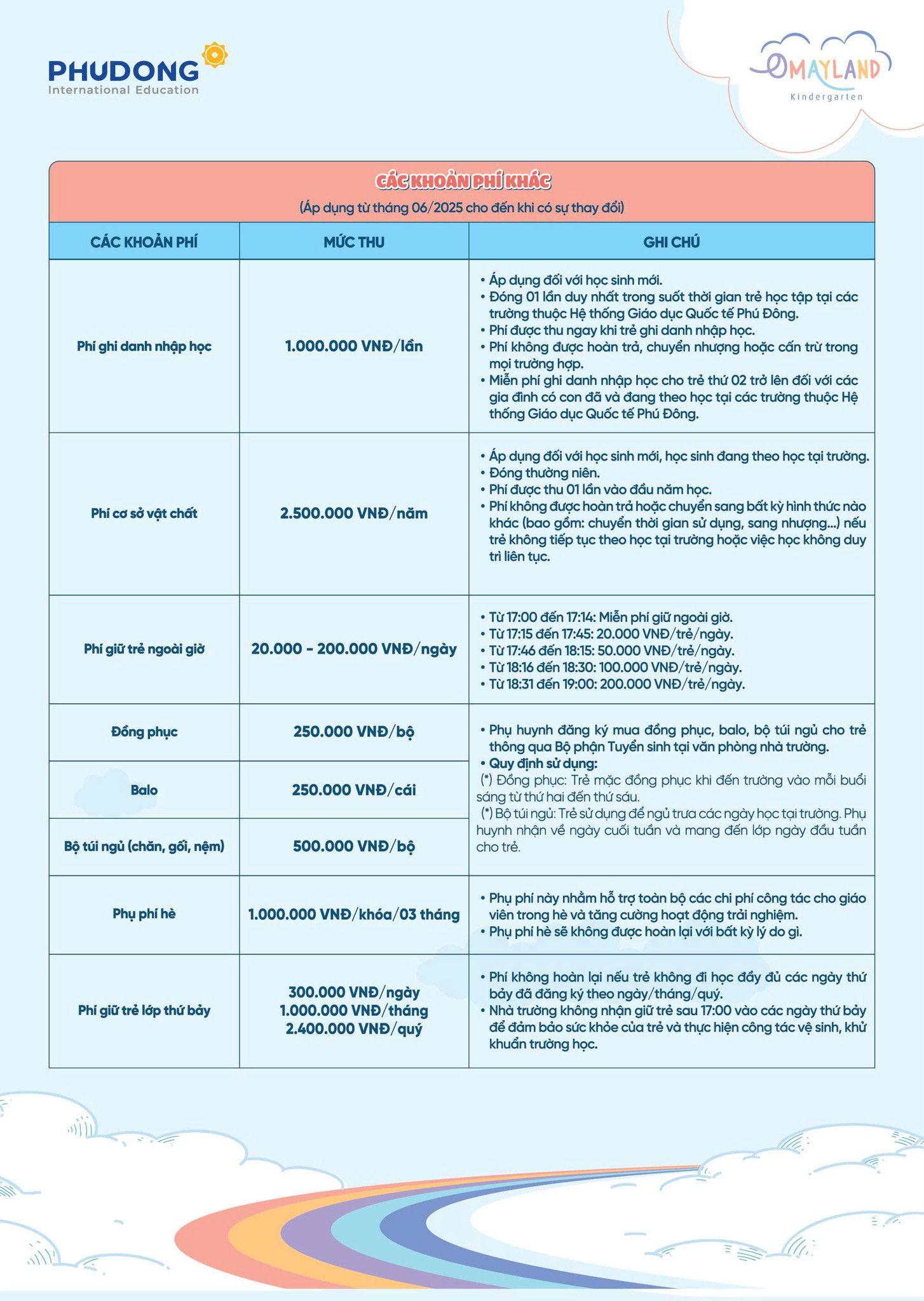 Các mức phí khác